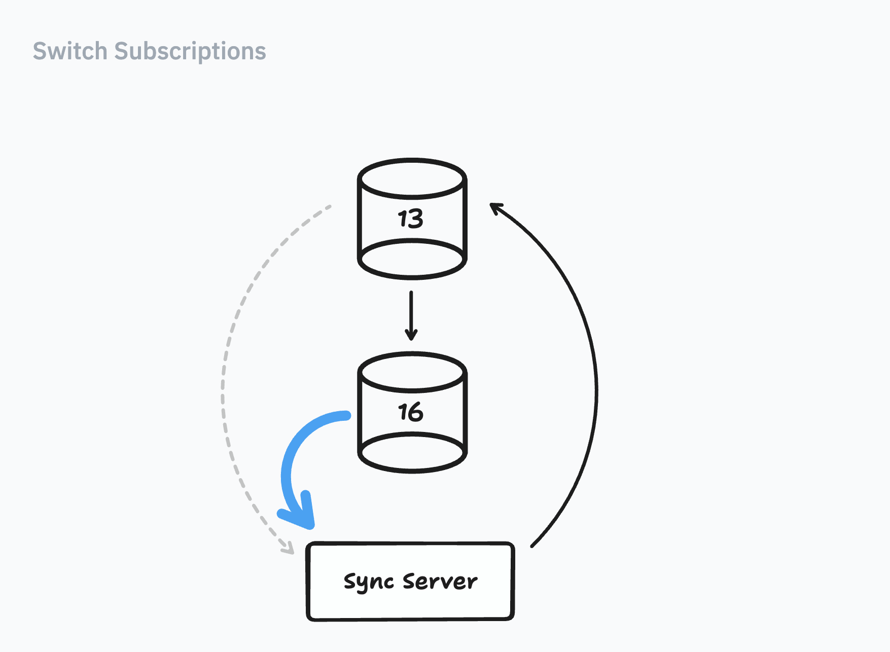 To do this, we added a next-database-url variable to our sync servers. During startup, if next-database-url was set, sync servers would subscribe from there: